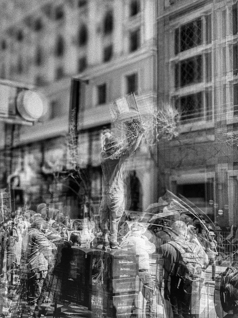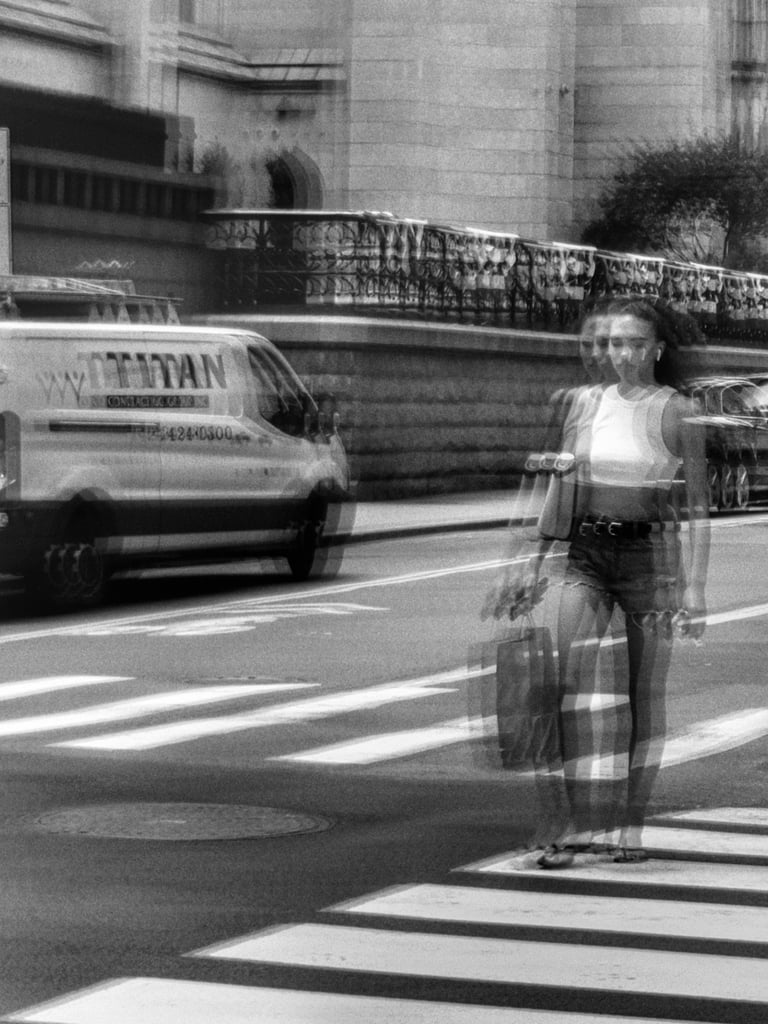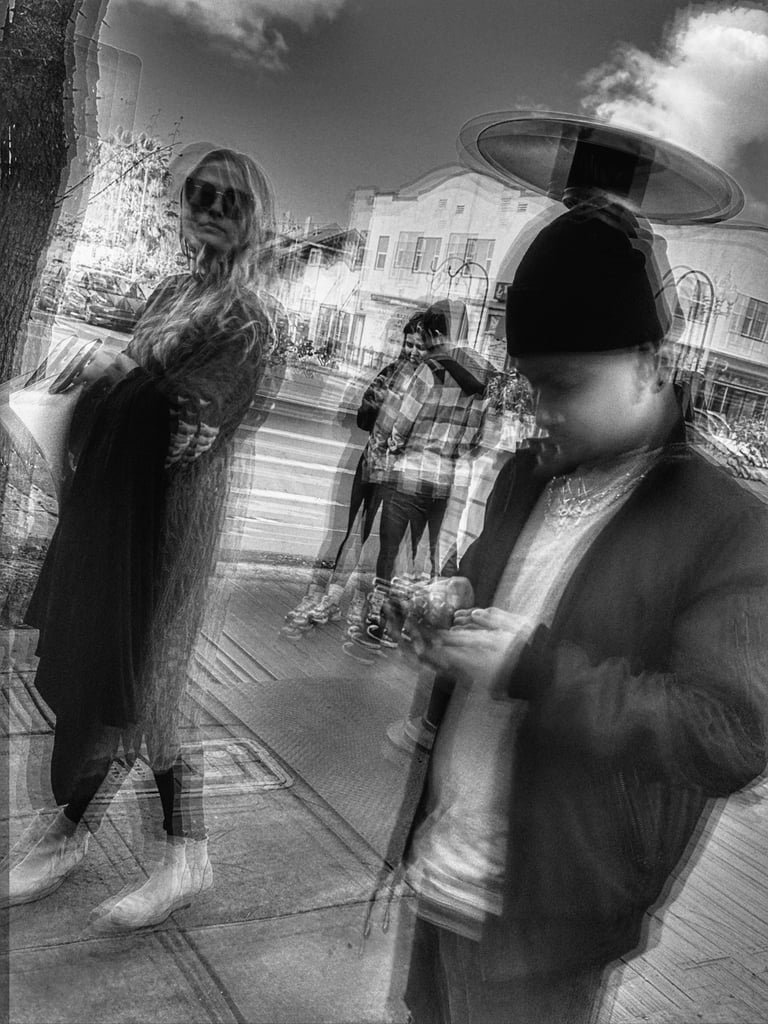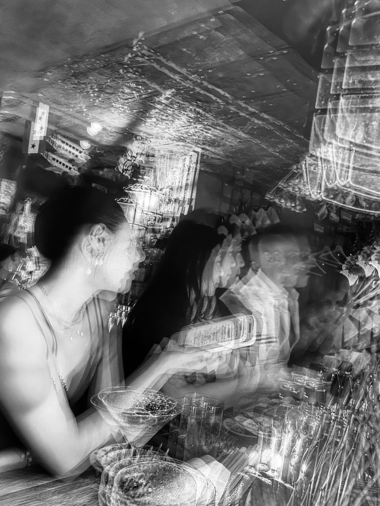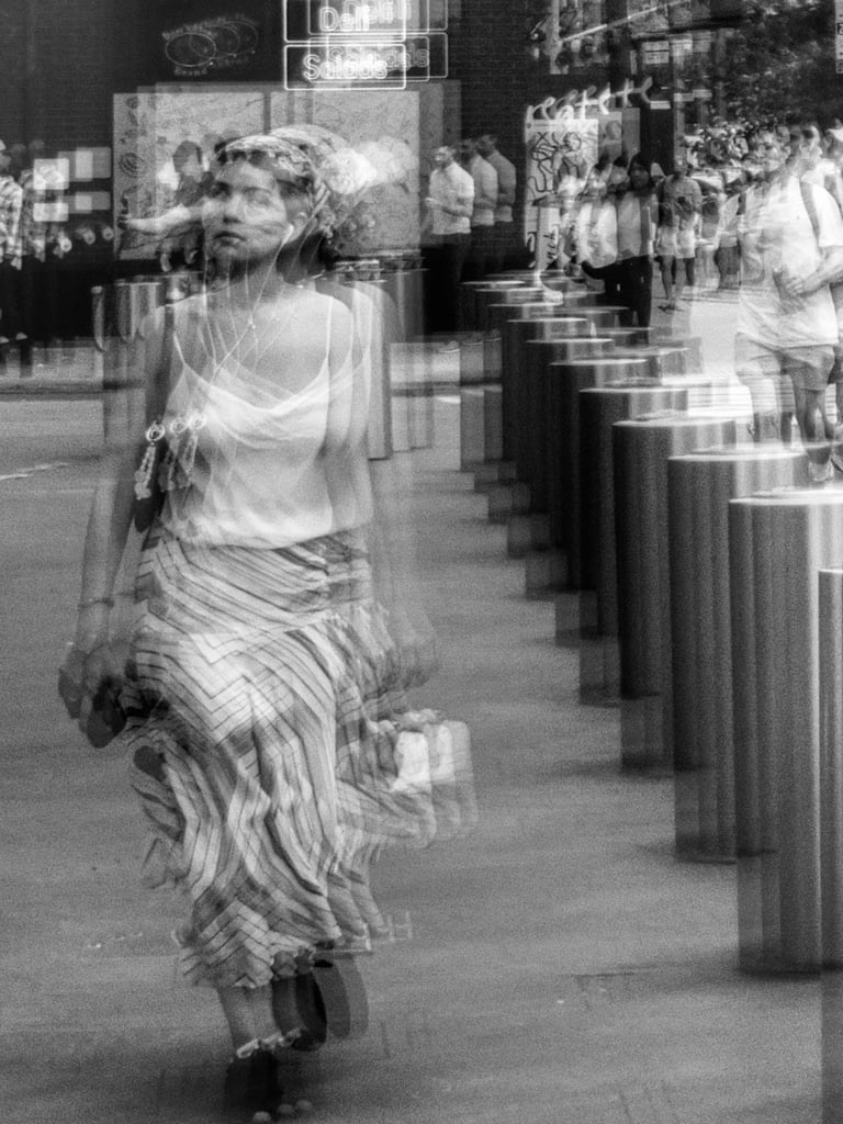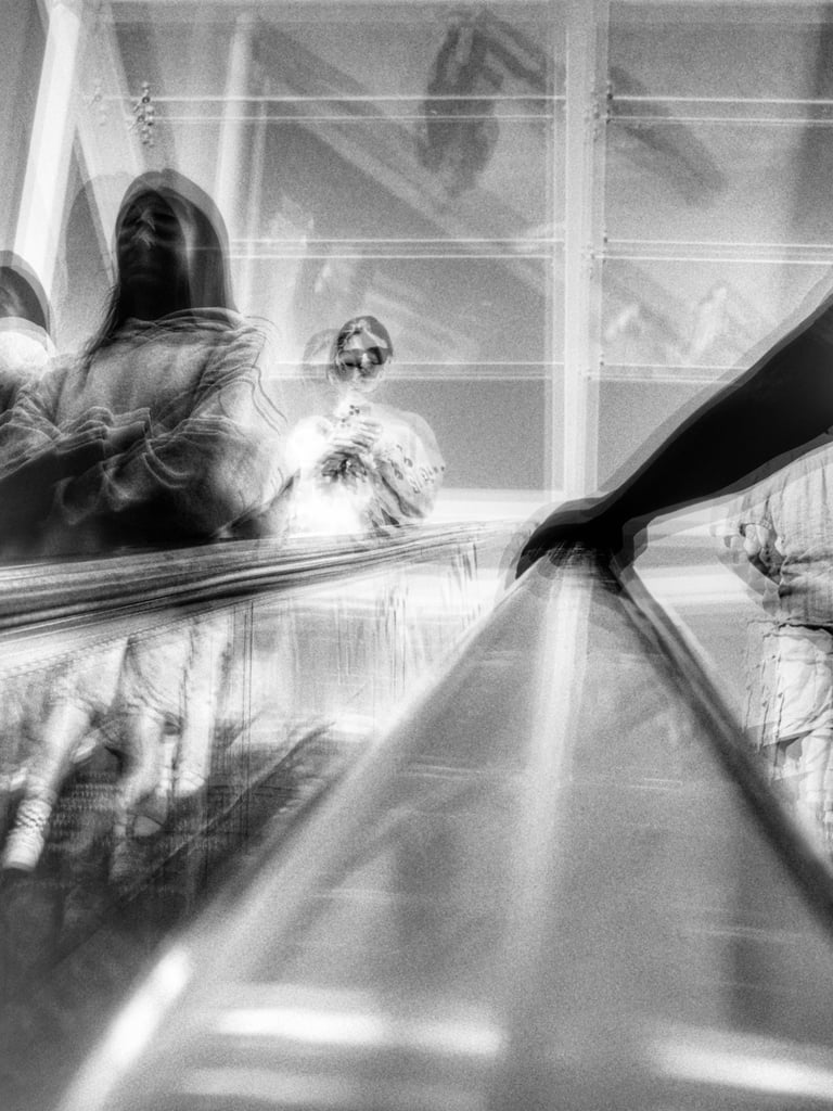 Efra’s multi-exposure, abstract photographs capture fleeting gestures, light, and atmosphere in ways that suggest movement rather than stillness.